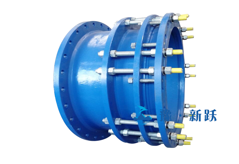 可拆式雙法蘭松套傳力接頭適用于兩邊均與法蘭連接的管路中,安裝時(shí)調(diào)節(jié)產(chǎn)品兩端與法蘭的安裝長度,對角依次均勻擰緊壓蓋螺栓,使其成為一個整體,并有一定的位移量,方便安裝維修時(shí),根據(jù)現(xiàn)場尺寸進(jìn)行調(diào)整。在工作時(shí)可以把軸向推力傳遞至正個管道。