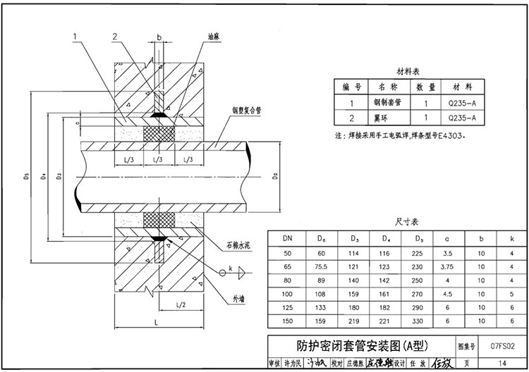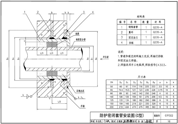 07FS02防護(hù)密閉套管圖集A B C D E F技術(shù)參數(shù)